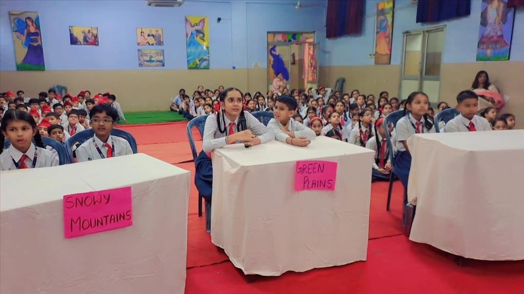 The school organized a vibrant “No Bag Day” for Class VII, focusing on experiential learning, creativity, and holistic growth. Each section presented projects on themes like Indore – India’s Cleanest City, Electric Vehicles in Punjab, Solar Villages, Punjab Bio-Energy, Dharli Cloud Burst, and Vantara & Madhuri the Elephant. Students showcased ideas through models, skits, and presentations, making learning meaningful.